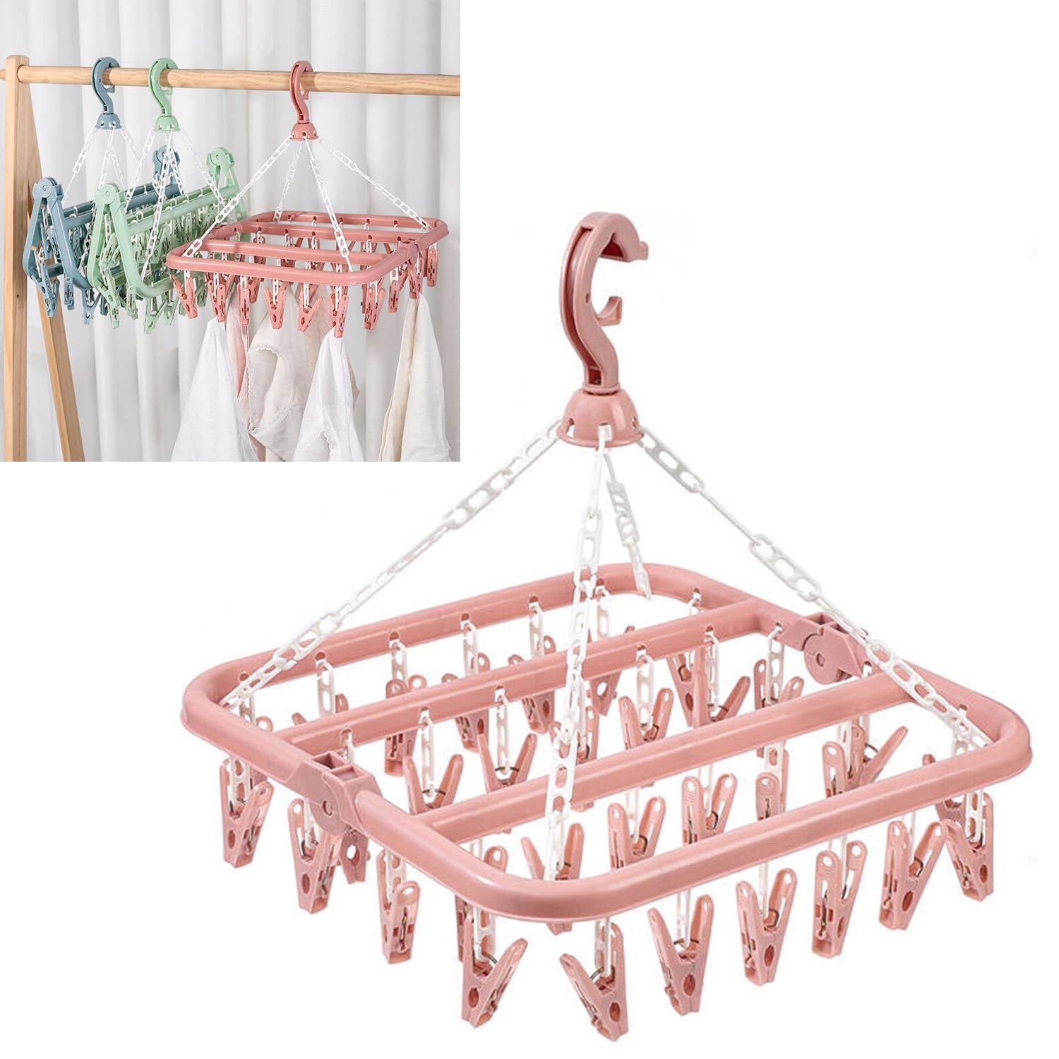 32-Clip Multipurpose Hanging Clothes Dryer – Durable Plastic Laundry Hanger, No-Electricity, Space-Saving Socks & Underwear Drying Rack for Home, Bathroom, Dorm, Closet Storage Organizer – 1pc