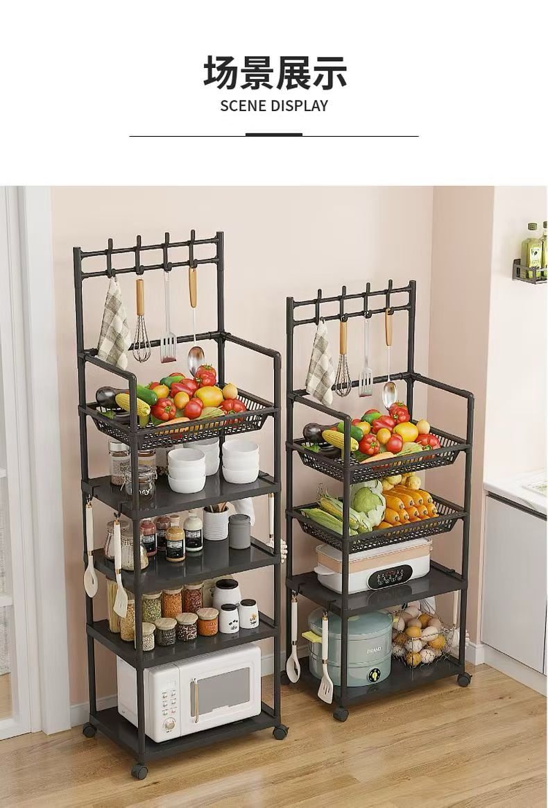 5-tier movable kitchen storage rack with hooks and wheels- Type B