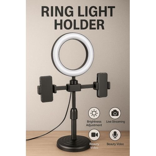 Generic 6 inches Desktop Live Light Holder set, which includes a ring light and two phone holders.