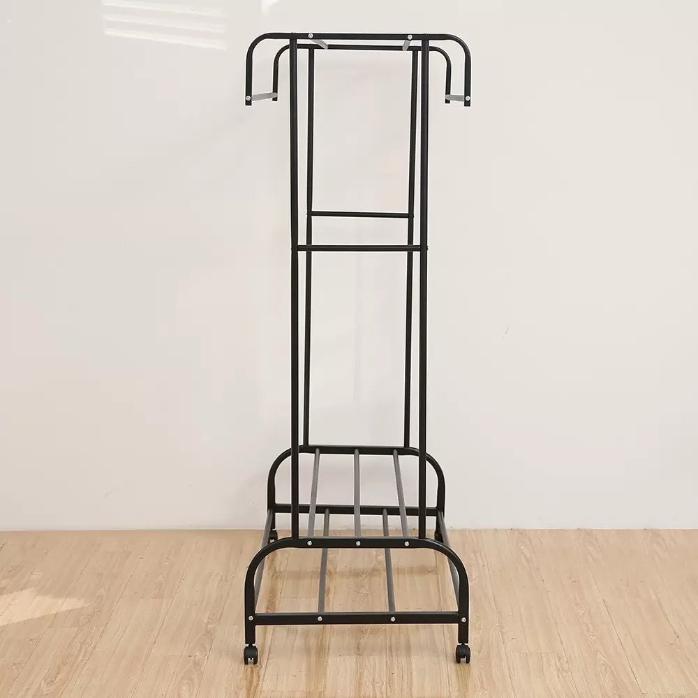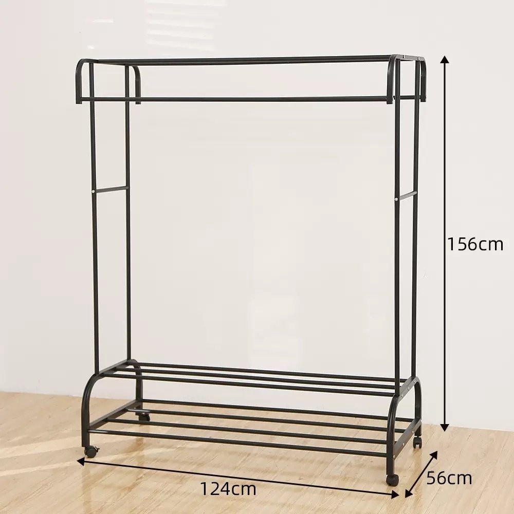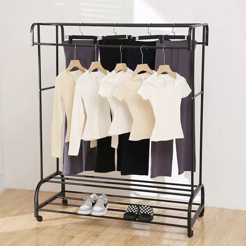 - Features: Includes multi-hanging poles for clothes, a bottom shelf for shoes or storage boxes, and a rust-prevention steel pipe construction.