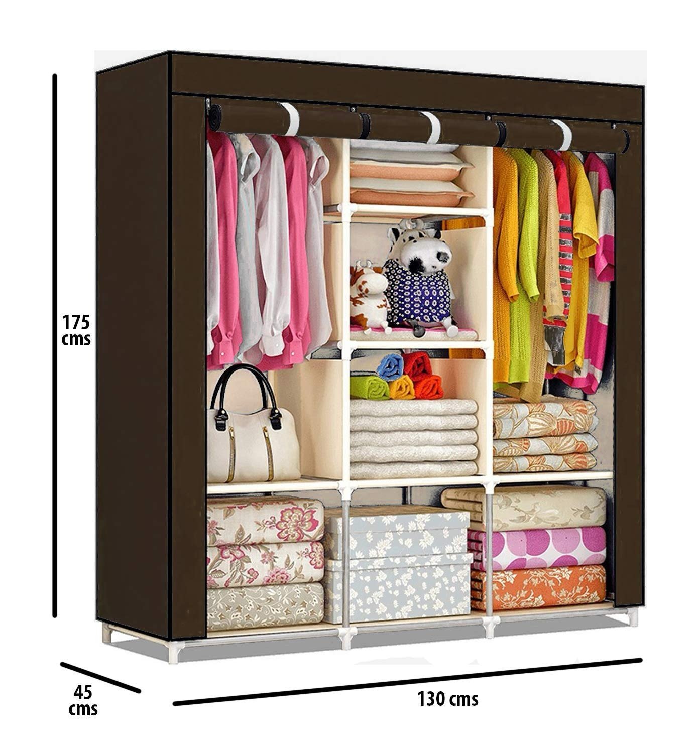 - Package Content: One 3-door foldable wardrobe, 8 Racks; Colour: many