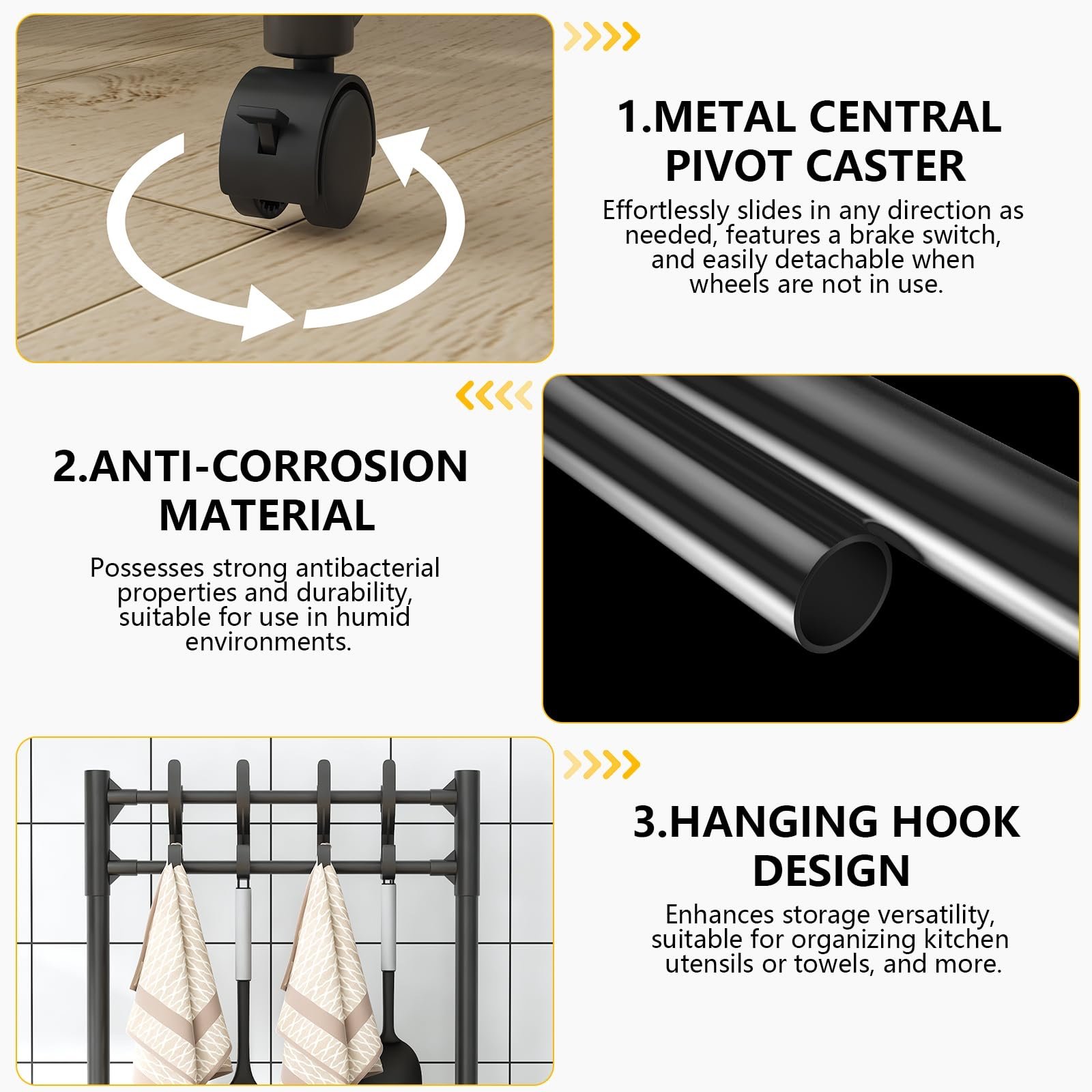 - 【Easy Assembly & Customization】The pantry shelves no more complex assembly nightmares! Clear pictures and step-by-step instructions ensure a quick 5-minute setup. The 4 easy-glide rubber wheels, with 360° rotation and 2 of them with brakes make the kitchen storage unit more stable. Customize it as needed – it’s easy to remove or install wheels.