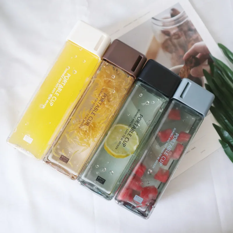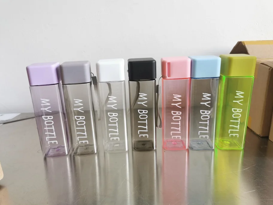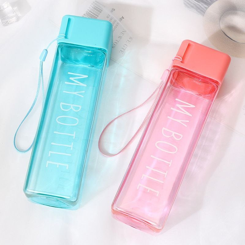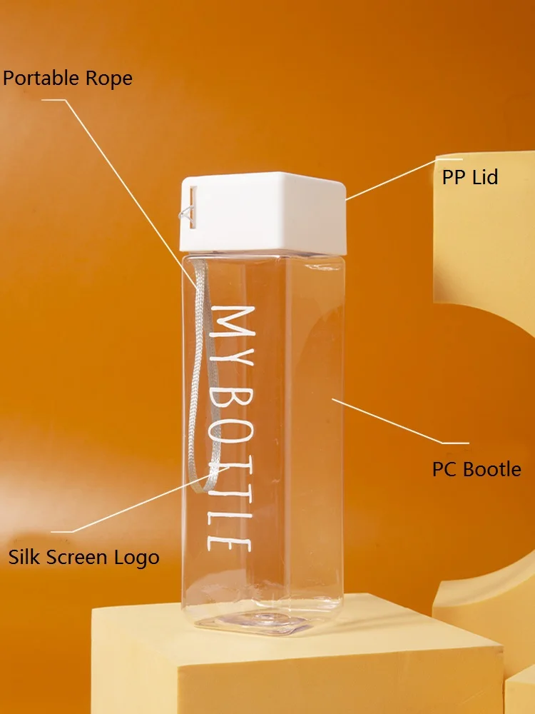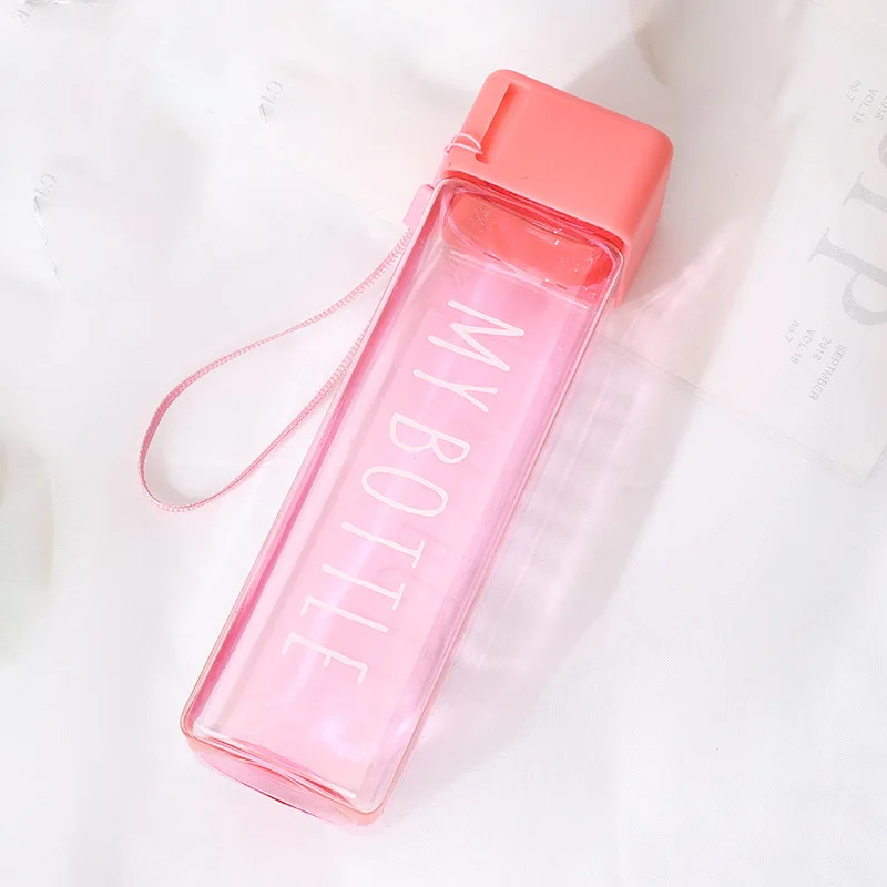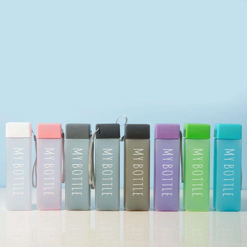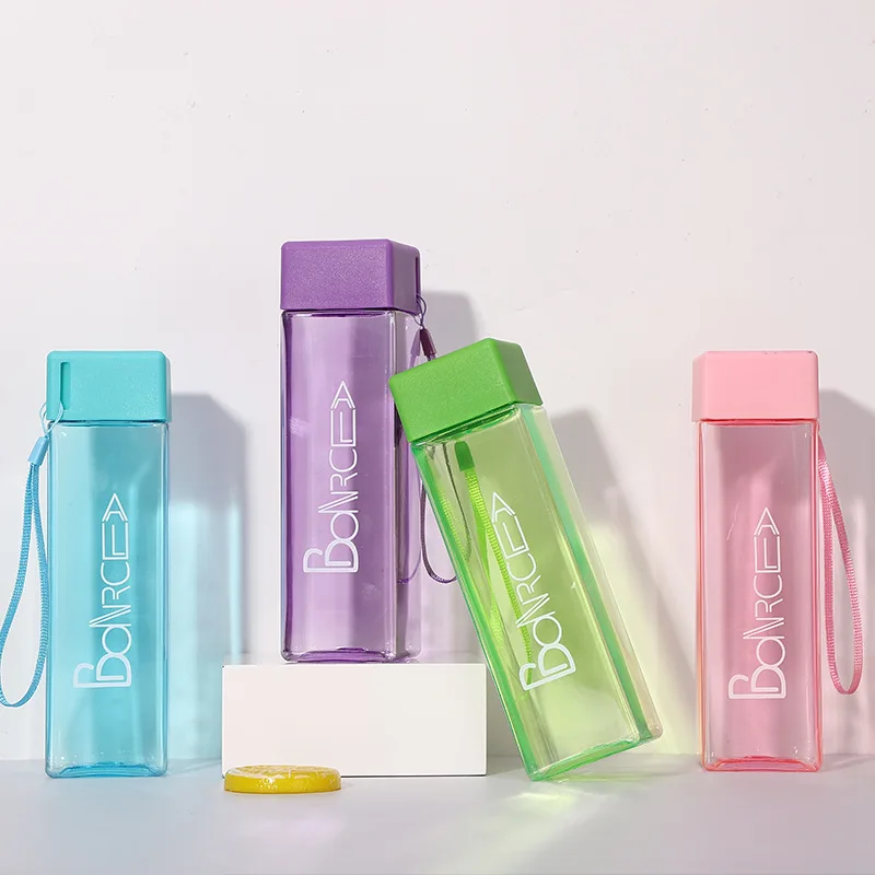 New Arrivals 450ml Transparent Travel Colorful Square Shaped Sport Plastic Water Bottle With Portable Rope