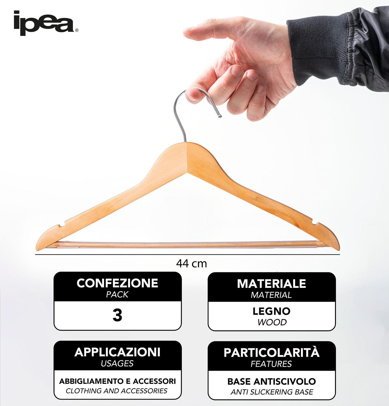 - PACK OF 3 UNITS – The set of 3 hangers comes in a convenient and practical packaging, also ideal for gifts.