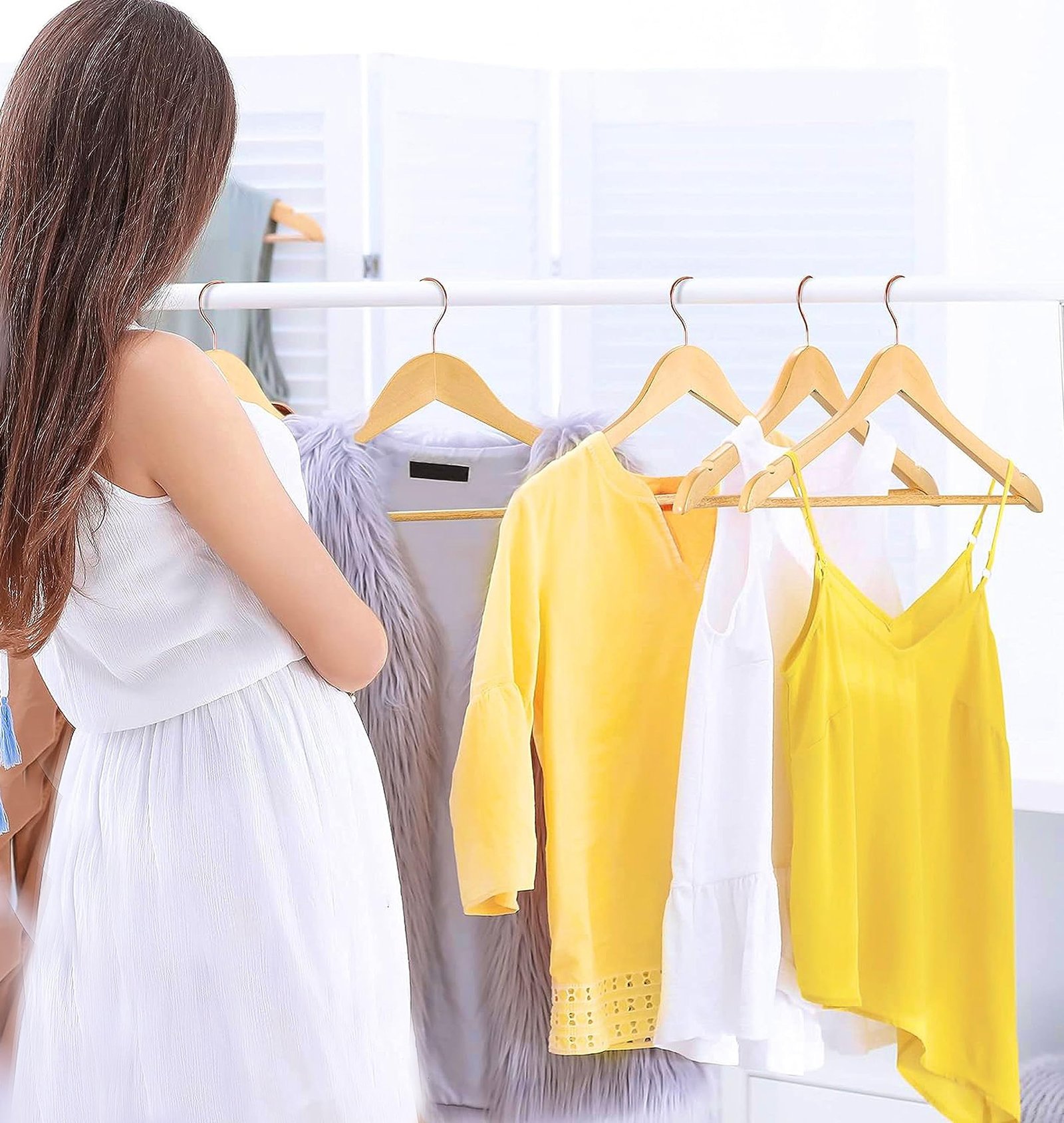 - VERSATILITY This set of 3 is ideal for hanging a variety of garments, including jackets, shirts, dresses and pants. Thanks to their design and the strength of the wood, the hangers take up little space and can be easily inserted into the closet to optimise the organisation of your wardrobe.